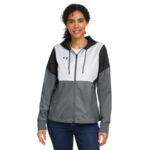 3.17 oz., 100% polyester; UA Storm technology repels water without sacrificing breathability; Wind-resistant construction shields you from the elements; Adjustable hood with extended brim; Full mesh lining for added breathability; Secure, zip hand pockets with ribbed cuffs and heatseal logo ; Dropped, shaped hem; Internal locker loop;